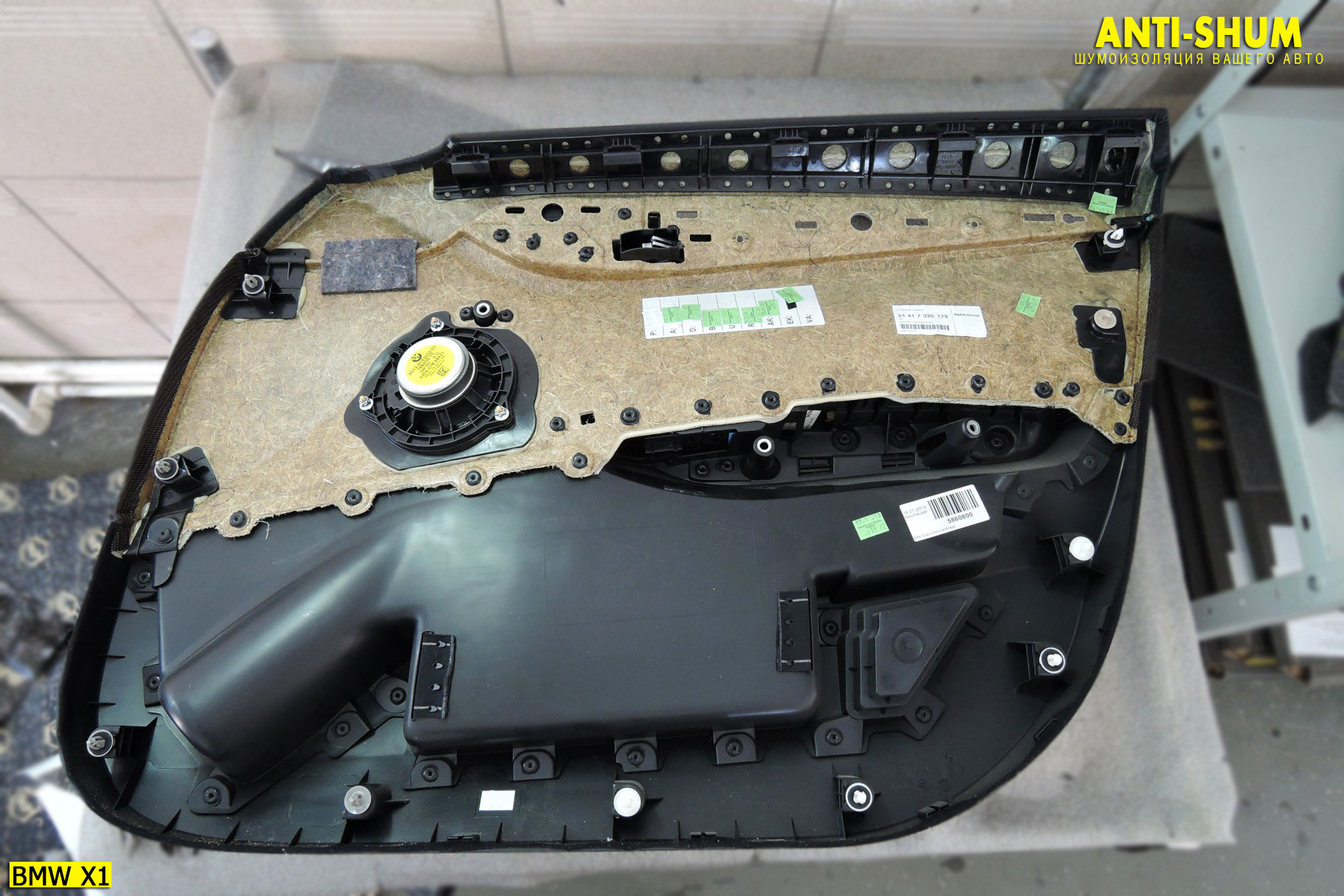 После аккуратной сборки задней части салона Вашего БМВ X1 мы переходим к шумоизоляции дверей.